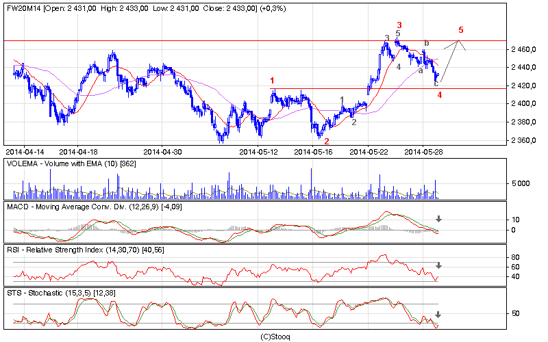 Wykres futa 1h. Ważne 2417 - poziom sygnalny koncepcji wzrostowej zakładającej podejście do wszystkim znanej luki - co ciekawe mamy tam (w okolicach 2417) 50 % fibo zniesienia całego majowego ruchu up.