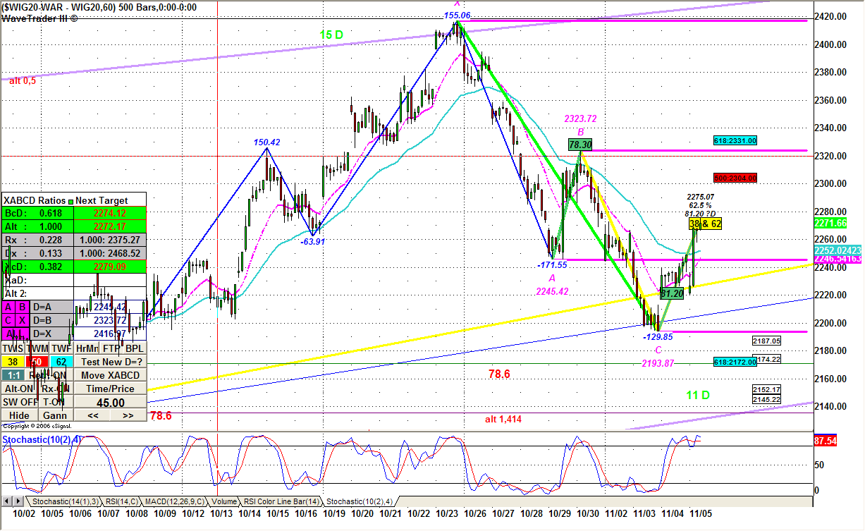 Przebicie poprzedniego szczytu (2258) wraz ze spadkowa intra, to mozliwe odrwocenie trendu na 1H, wazne wsparcie 2223-5, wyzej 55-8 rzecz jasna, opor 228x.