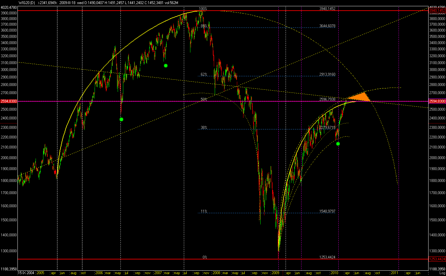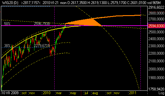 - aktualna fala wzrostowa (być może z korektami rzędu kilkuset p) może jeszcze trwać do czerwca - sierpnia i osiągnąć poziomy 2700-2800, w międzyczasie zejście/zejścia do 2300-2400. Skrajny przypadek to nawet początek 2011 jako koniec upa.