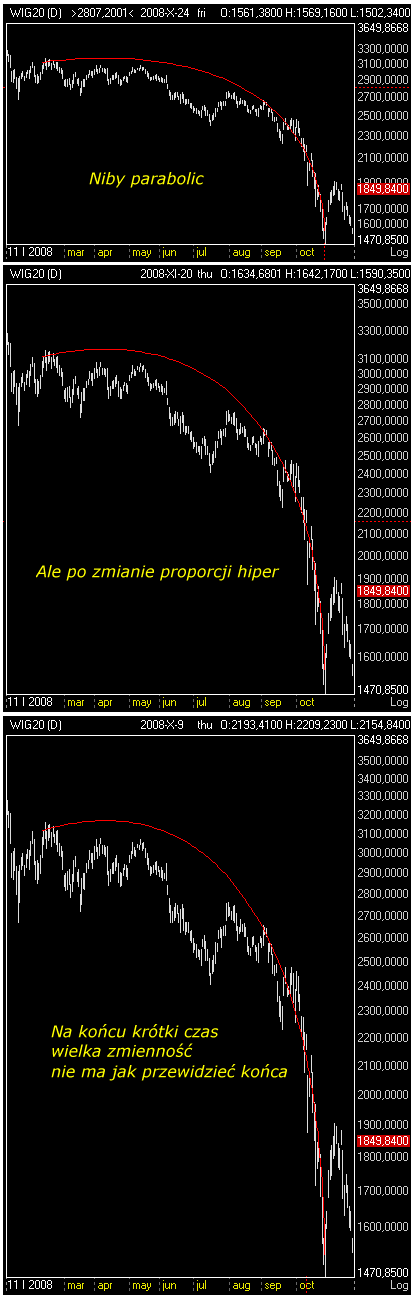 Skippy mam do ciebie taką prośbę - czy mógłbyś bliżej podefiniować jak rysujesz te krzywe? Zacząłem to powoli u siebie rysować i jedno jest dla mnie jasne - to na pewno nie są proste parabole. Ciekawi mnie iloma parametrami możesz ruszać, aby te krzywe dopasowywać. Chciałbym w miarę możliwości sobie to zaprogramować i popróbować na walutach.