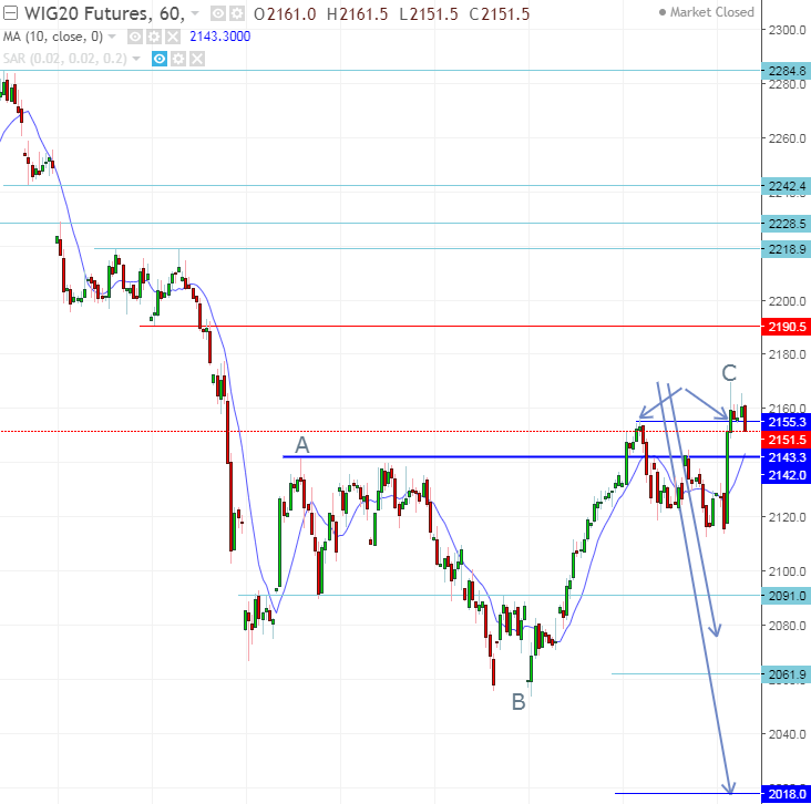 Impuls spadkowy 5 falowy zakończony , wyglada na to że kręcimy korektę prostą ABC co wnioskując po równości fal powinno dać 2220