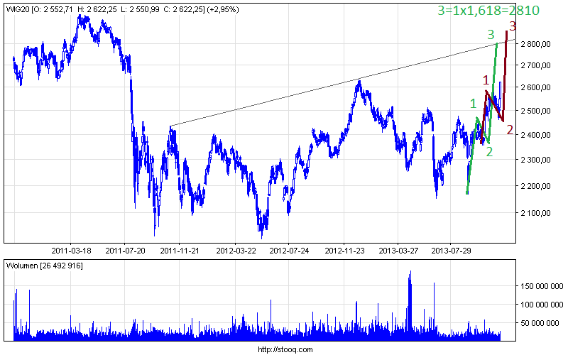 Wszyscy wieszczą hozzzę to i ja się podłączę ;) Po przekopaniu październikowych maxów krótkoterminowo wydaje się że jesteśmy w czerwonej 3 gdzie brakuje nam ostatnich dwóch falek - 4 i 5, pózniej jakieś zejście (czerwona 4) i dalej up (czerwona 5).