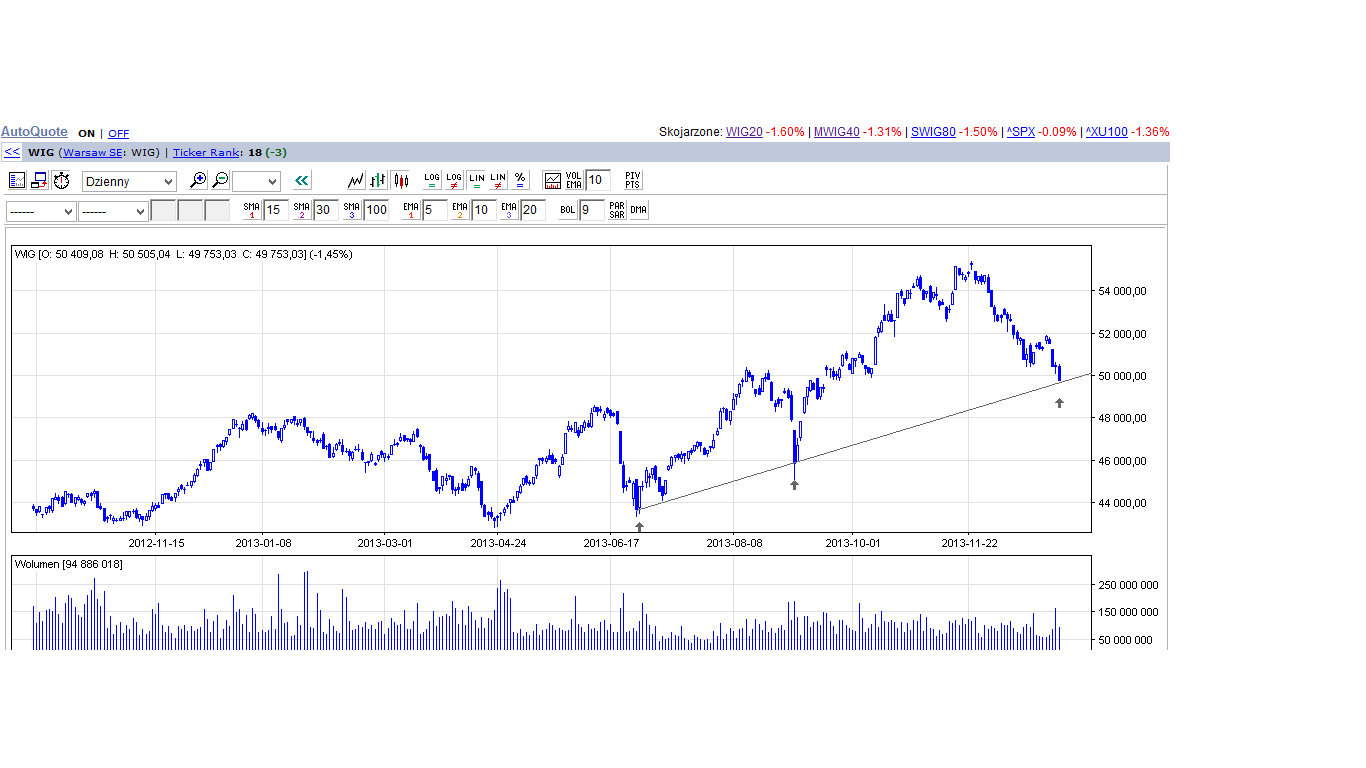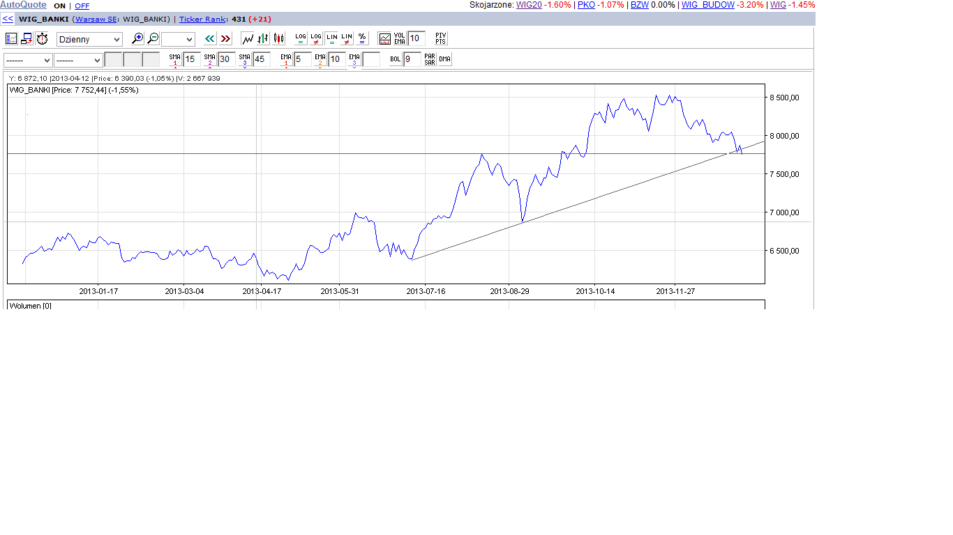 Co prawda wig banki lekko linie trendu już naruszył trzeba obserwować co dalej będzie, lekkie naruszenie i do góry czy dalej lecimy na dół.