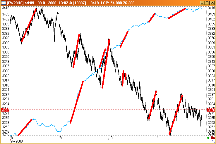 Na wykresie godzinowym metodą Przełamania Dwóch Linii zaistniała sytuacja która powinna doprowadzić kurs FW20 do 3360 i następnie do 3490 .... do tej pory takie zdarzenie się sprawdzało lecz niestety nie potrafię powiedzieć kiedy ono nastąpi ...