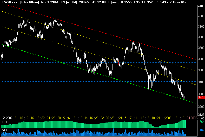 Na wykresie dziennym już nastąpiła 9-ta sesja spadkowa na moim wykresie ... hmm .... czas na odreagowanie jest naprawdę bardzo blisko ... może nawet jutro ... oznaką będzie pokonanie poziomu 3300 dla FW20 i 3280 dla WIG20 .