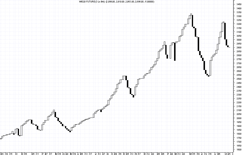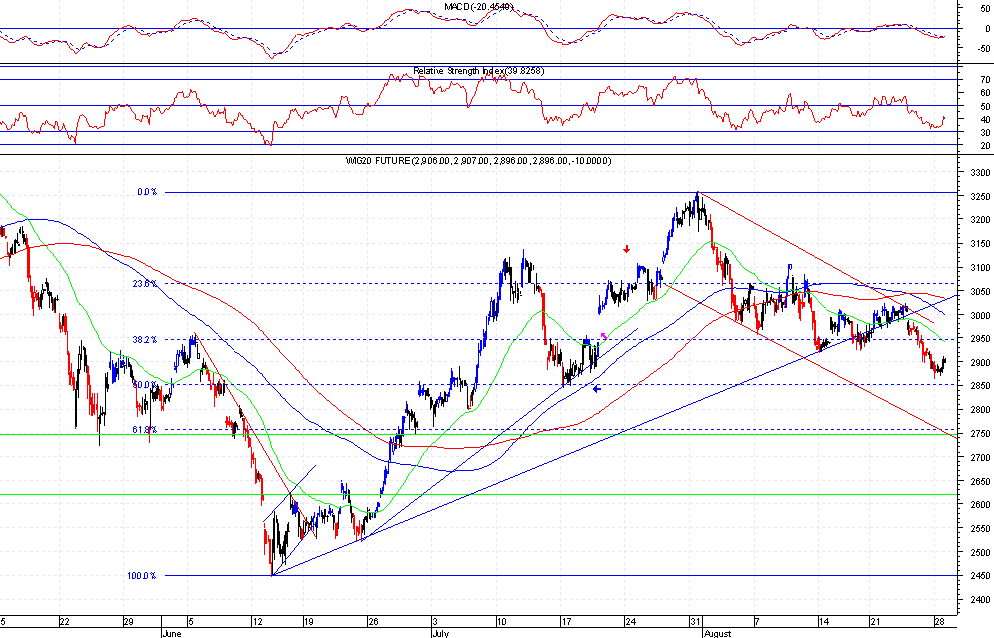 Obecnie jestem poza rynkiem wiec moje spostrzezenia moga byc najbardziej obiektywne. Prawdopodobnie na dzisiejszej sesji zrobilismy lokalne minimum na najblizsze kilka sesji. Dobry close za oceanem pozwoli na kilka sesji wzrostu. Ostatni spadek ma juz 5 falowa strukturŕ i jutro nie powinnismy spaÂc poni?ej poziomu 2850- poziom ten jest jednoczesnie 50% fibem. Jutro rano otworzylbym pozycje l przynajmniej do poziomu 2920- tam sie rozstrzygnie. Przejscie poziomu 2930 to wstepny sygnal kupna, potwierdzenie to wyjscie powyzej 2950 z zasiegiem przynajmniej do 3070-23% fib. Dobry klimat za oceanem powinien pomoc w realizacji scenariusza. Ewentualne lokalne korekty to juz zajecie dla specjalistow od falek. Zagrozenie to 4 czarne linie na wykresie 3 linii ale nie zapominajmy , ze pomimo trendu spadkowego w obrebie tego wykresu mozliwe sa zwyzki ( nison a konstrukcja wykresu 3 linii). Tutaj sygnal l pojawi sie dopiero na close powyzej 3086 pkt. Uwaga na koncowke serii i koniec 3 kwartalu!!! Zycze udanych inwestycji.