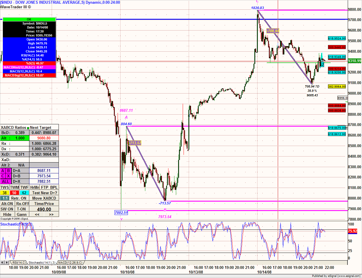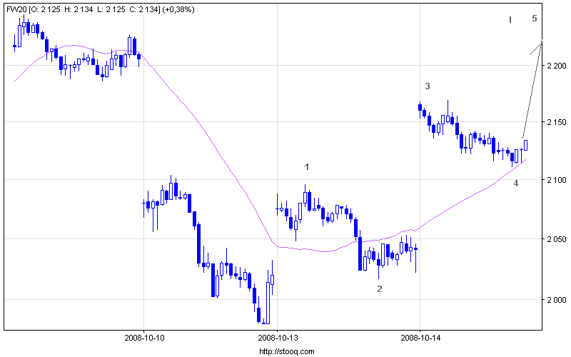 Jak na razie wykres DJIA wyglada obiecujaco.Srednie ruchome zostaly obronione choc z trudem a spadki byly niewielkie po tak duzym odbiciu i zatrzymaly sie na fibonku 38,2%.Wiec jutro mozliwa fala 5 w A w 4 w C na WIG20.