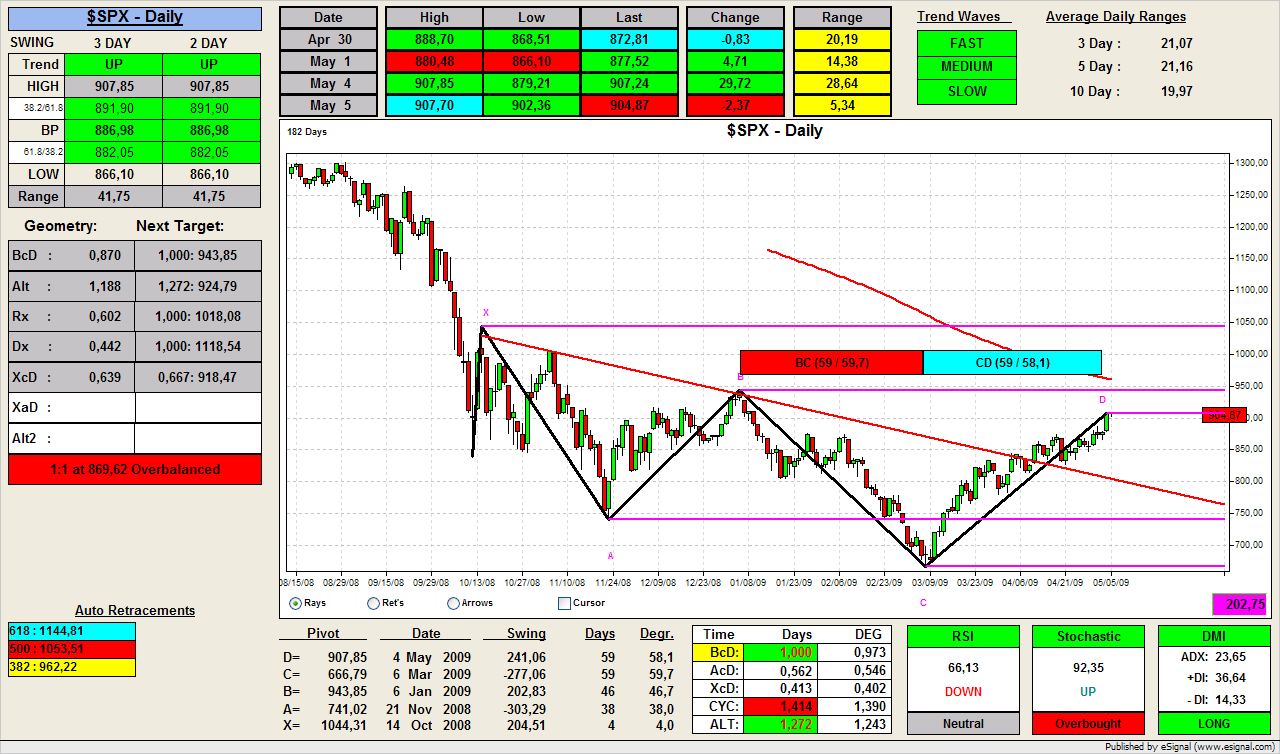 Z poprzedniego wypracowanka (solid geometry) wynika, iż w dniu dzisiejszym może być istotny dzień - jeśli miało sens :) . Dodatkowo w dniu dzisiejszym jest 1:1 do czas spadku ostatniej fali. Następne 1:1 w cenie - jeśli padnie szczyt to 895,75