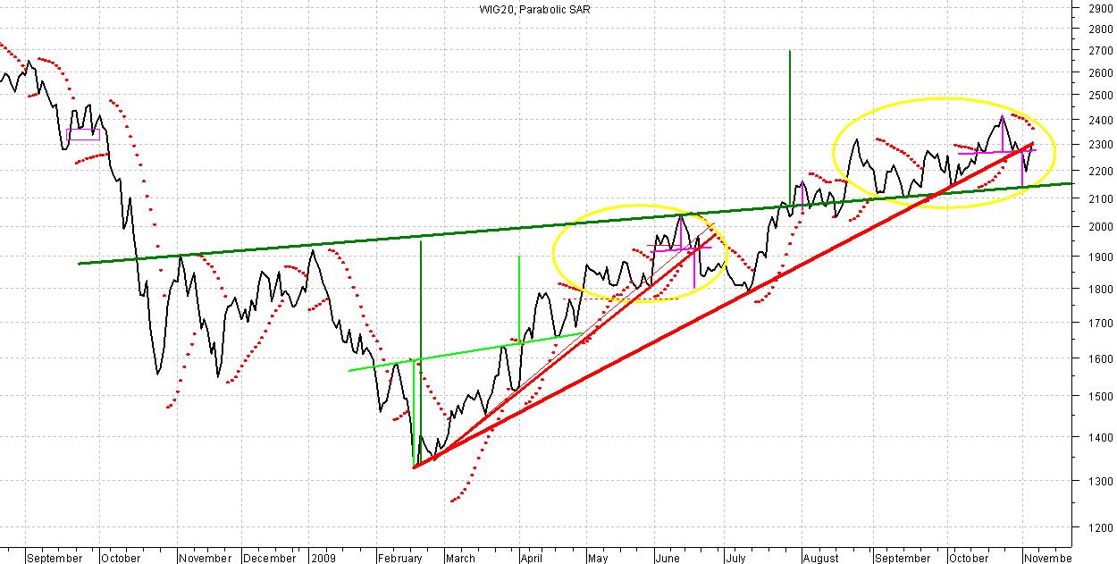 - wczorajszy close (zniesienie 50% spadku, ponadto dwudniowe wzrosty to ruch powrotny do przebitej linii trendu na wykresie liniowym)