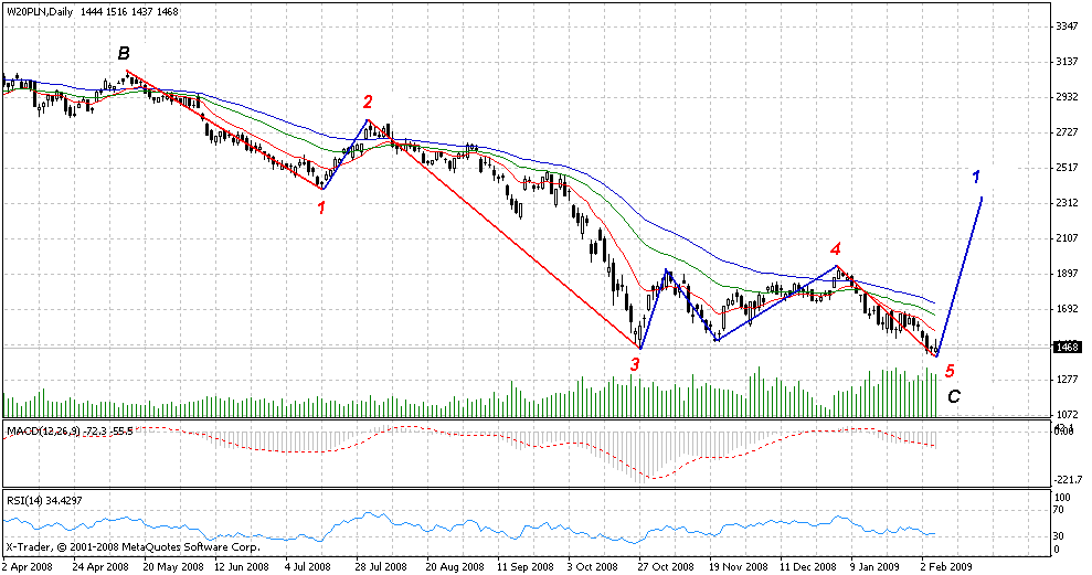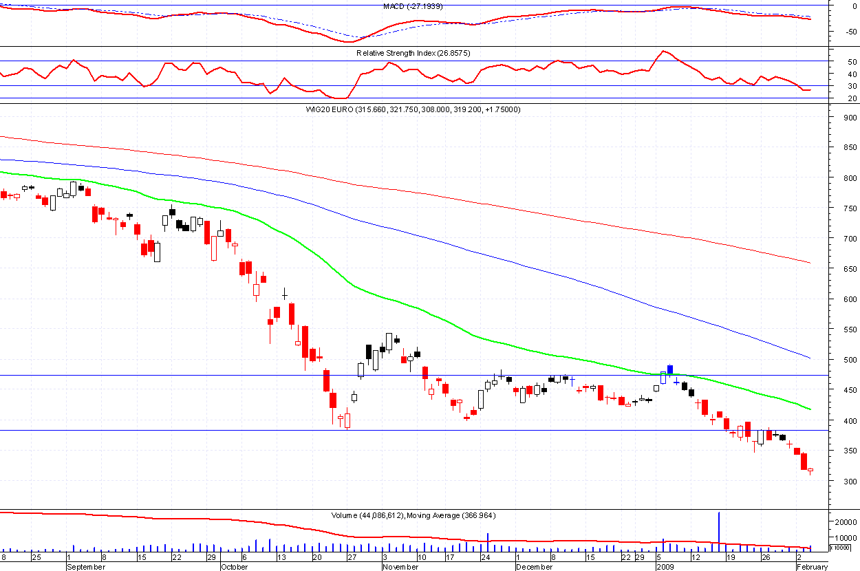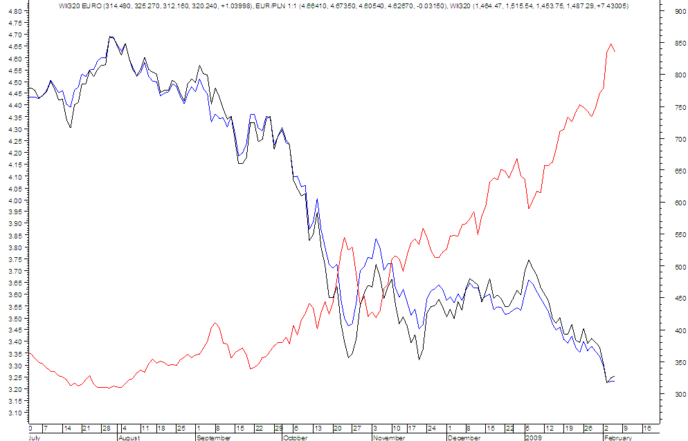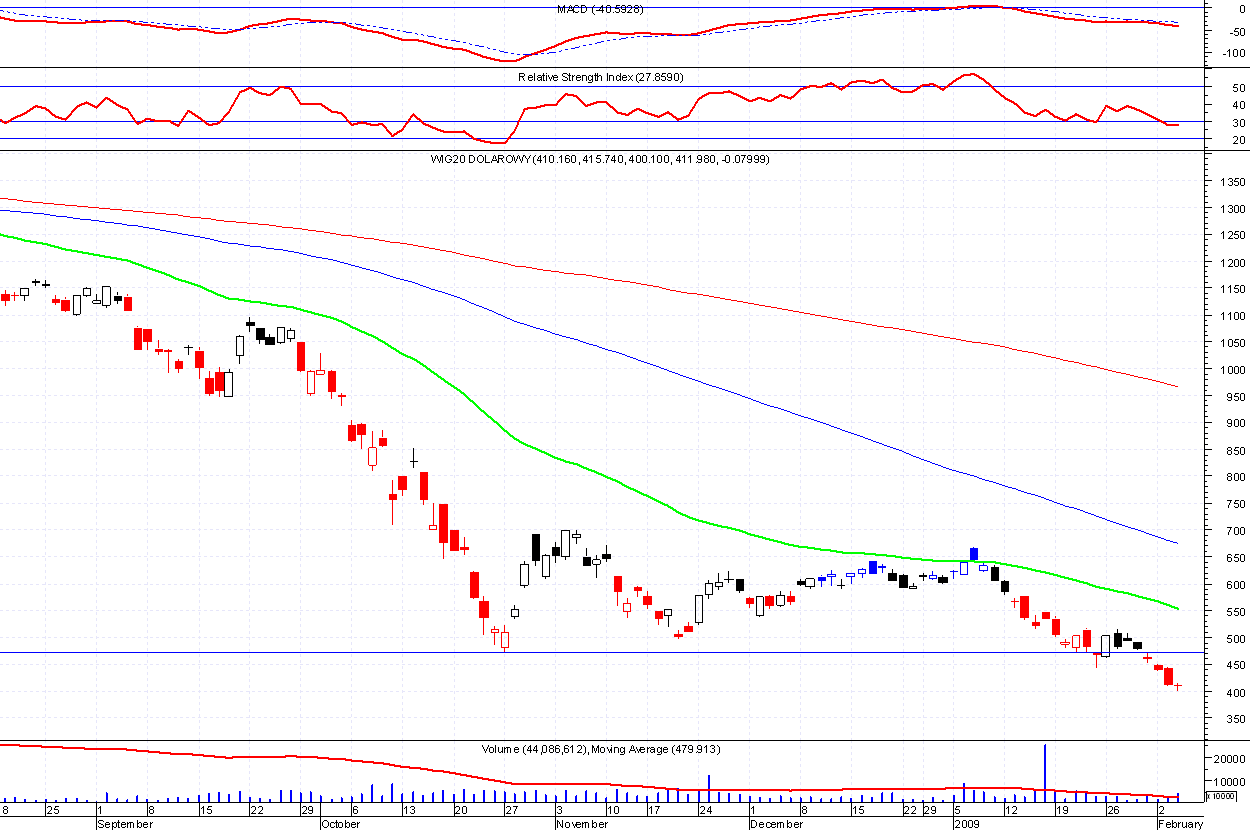 Na razie kupującym nie udało się odwrócic tragicznej sytuacji naszego rynku. Całości dopełnia galopujący spadek wartości rodzimej waluty. Bardzo duże znaczenie ma nasz kurs wobec franka- rosnące raty kredytowe sto spadek popytu wewnętrznego co przy spowolnieniu exportu i zapotrzebowania na nasze towary w EU dopełnia obraz kryzysu. Póki nasza waluta nie zacznie się umacniac raczej marne szanse na korektę. Warto obejrzec wykresy naszego indexu w usd i eur , gdzie jesteśmy znacznie słabsi niż w pln.