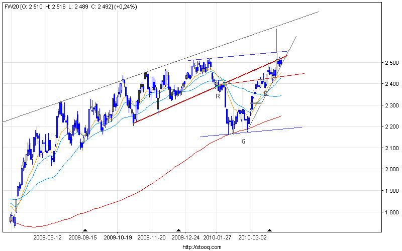 Dla podtrzymania wzrostowej sekwencji, byki powinny teraz zaatakowac ponownie bariere podazowa zlokalizowana w strefach 2500 i 2516-25.