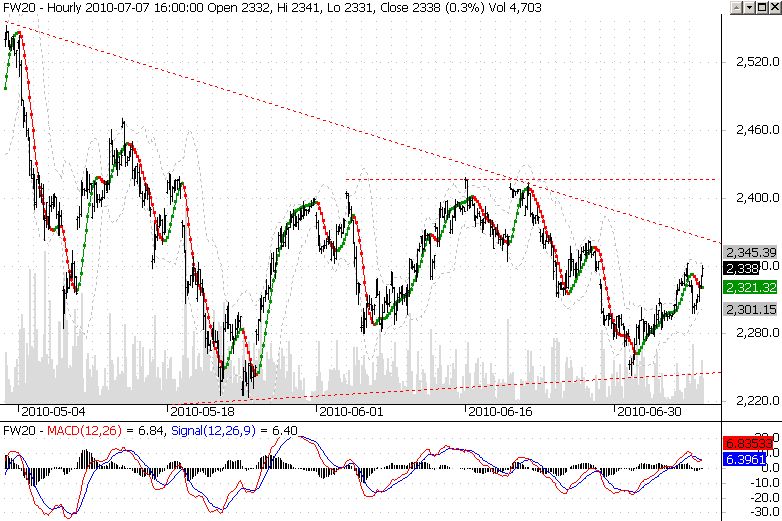 Jak na razie trend intra obroniony, ale jego złamanie to raczej pewny test poziomu 2312.