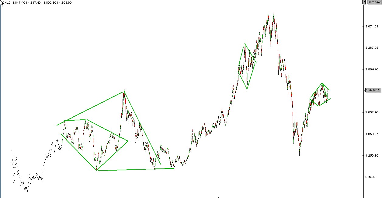 Na czarcie " qasi mars" na zielono ruch ktory przewidzialy karty (atak na nowe szczyty), na czerwono korekta