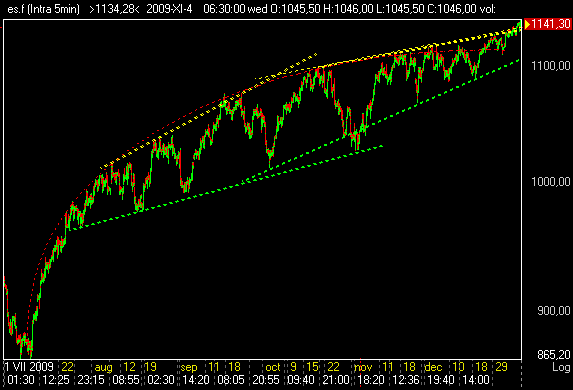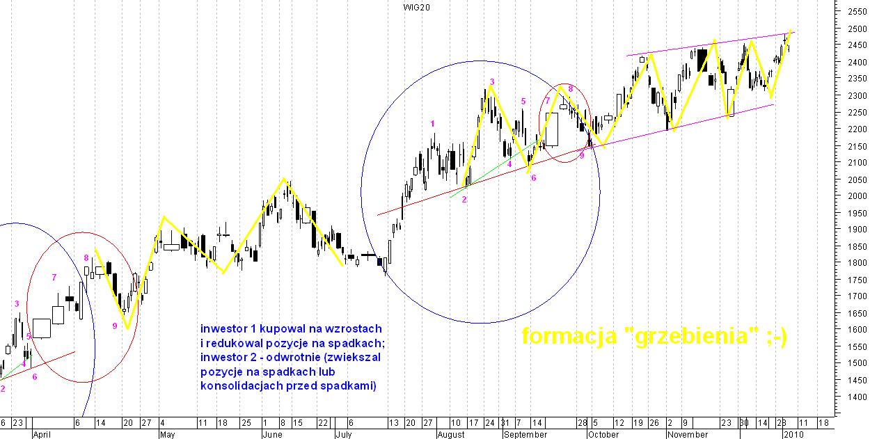 Na naszym rynku, pomimo czwartkowego zjazdu, nie widać póki co ewakuacji korsarza, który stał za dziesięciomiesięczną hossą. Dodatkowo warto pamiętać, że w w XII nie skorzystał on z okazji realizacji kolosalnych zysków i zamknięcia pozycji w czasie wygasania futów, lecz zrolował pozycje a dodatkowo dołożył "do worka" ok 7k nowych pozycji, co pokazuje, ze konsekwentnie realizuje on swoje strategie, zakładające dalsze "pompowanie" rynku. Wzrostom paradoksalnie sprzyja rysowanie kolejnych "ząbków grzebienia" na indeksie, powodujących, że rynek ciągle wspina się w atmosferze niewiary w dalsze wzrosty i ciągłe oczekiwania na spadkową korektę.
