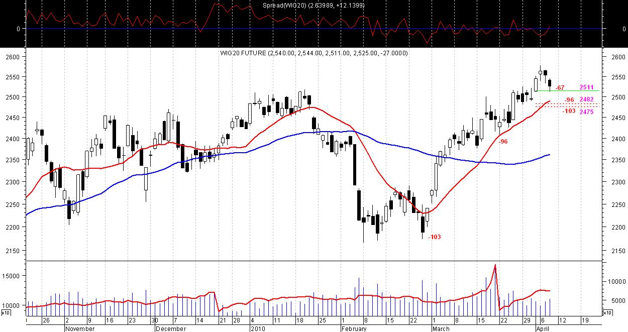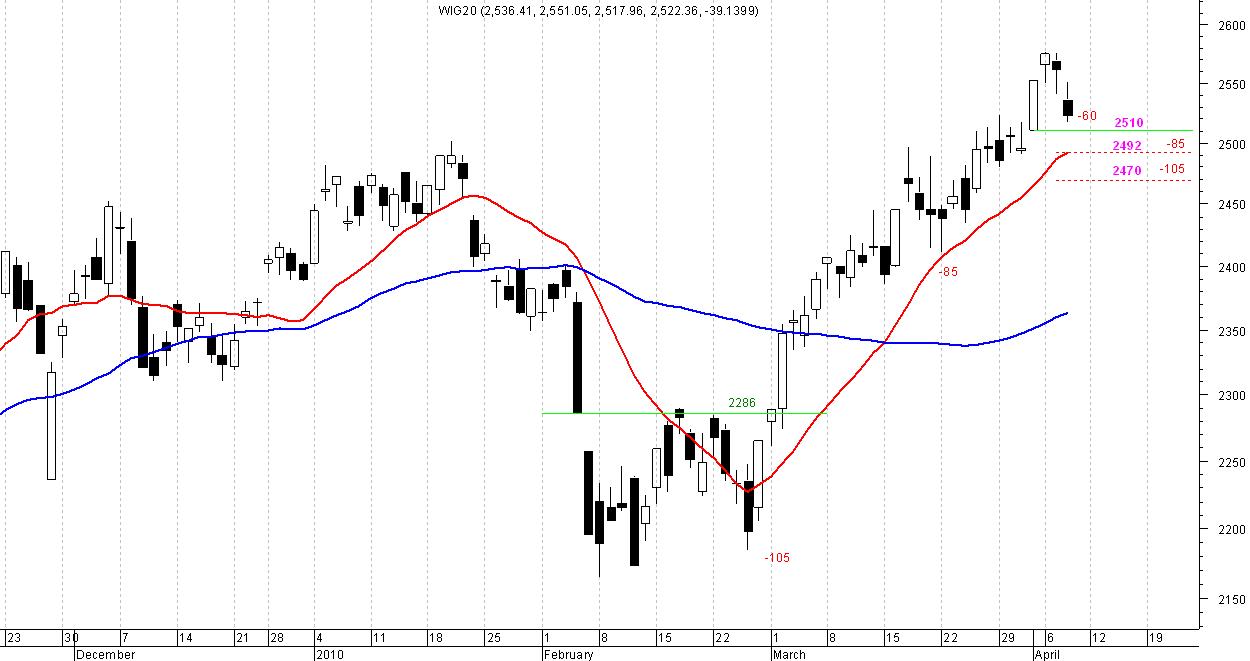 Zeby to zweryfikować warto obserwować zachowanie indeksu wobec poziomów zaznaczonych na wykresie, które pozwolą określić czy obecne zejście jest ząbkiem w dynamicznej fali 3, czy rozpoczęła się fala 4, lub czy będziemy korygować cały impuls wzrostowy.
