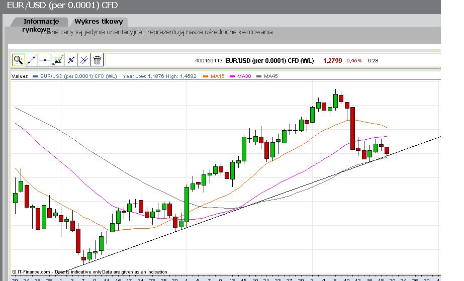 Dodatkowy wskaźnik to EURUSD, który dziś w nocy powrócił do linii trendu i ponownie ją testował na 1,2781.
