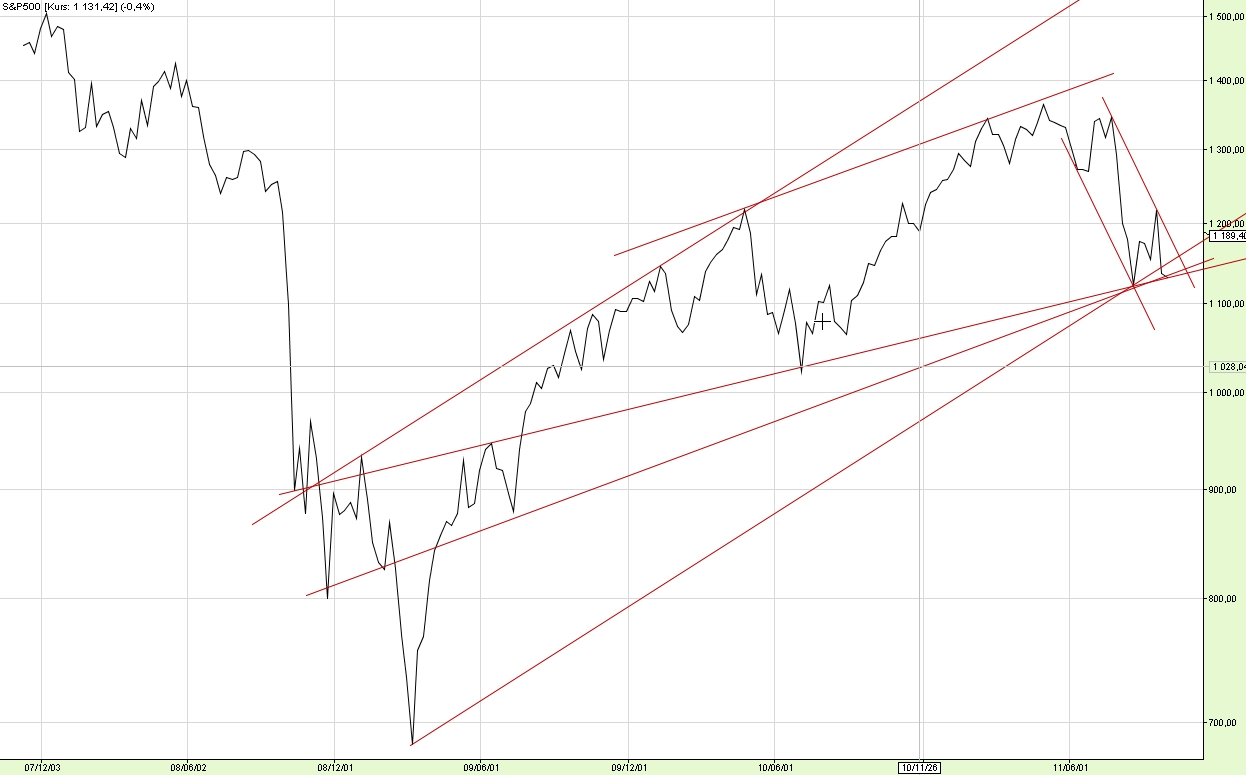 Tworzenie się dodatkowych Linii Bessy nie nastraja optymistycznie. Tak więc dopóki nie będą łamane o powrocie do 3000 można tylko pomarzyć. 2250 z możliwością próby dojścia do 2325 lub 2010 i dużo, dużo niżej ...