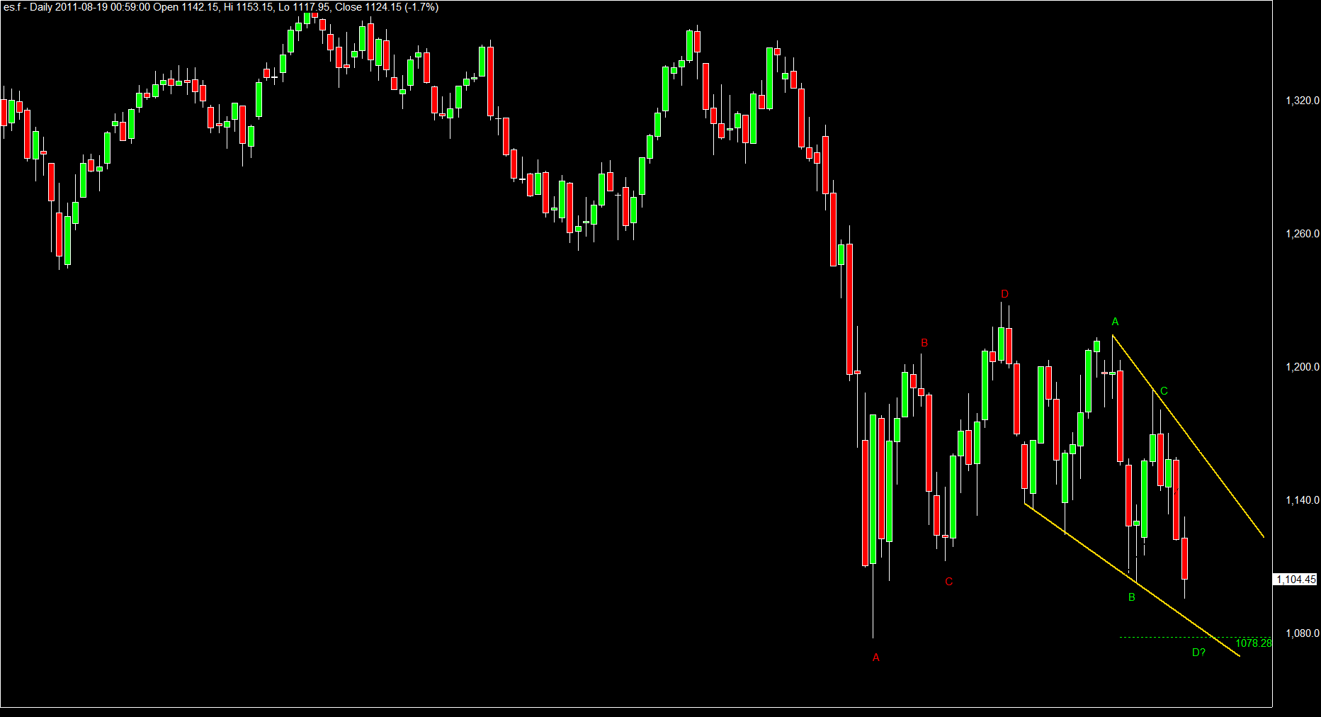 Dane danymi a rynek i tak dąży do wykończenia swojego zamysłu i /lub figury :) może tym zamysłem jest ABCD z targetem na 1078 . Identyczna struktura wyznaczyła maksima wewnątrz zarysu konsolidacji, może i tym razem wyznaczy punkt zwrotny. Sezon wyników za 10 dni , uważam to za czynnik popytotwórczy :)