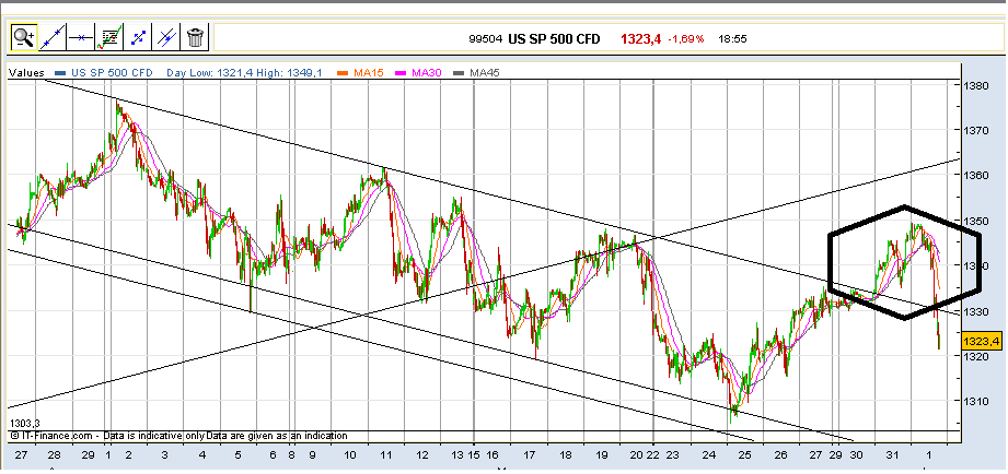 Najszybszym wsparciem na fucie jest ostatnia luka w okolicach 2880, następnym okolice 2840 gdzie jest kolejna luka i 50% fibona z ostatniej fali up. Na czarcie autorskie kreski więc proszę się nie sugerować :)