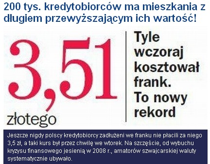 Wszyscy Polacy uczestniczą w medialnym serialu pt. "Ile jeszcze zdrożeje frank". Nagłówki prasowe straszą bardzo wyraziście, niestety na tym etapie nie jest to jednoznaczna wskazówka z cyklu: "Czy to już jest tak źle, że nie może być gorzej?" .