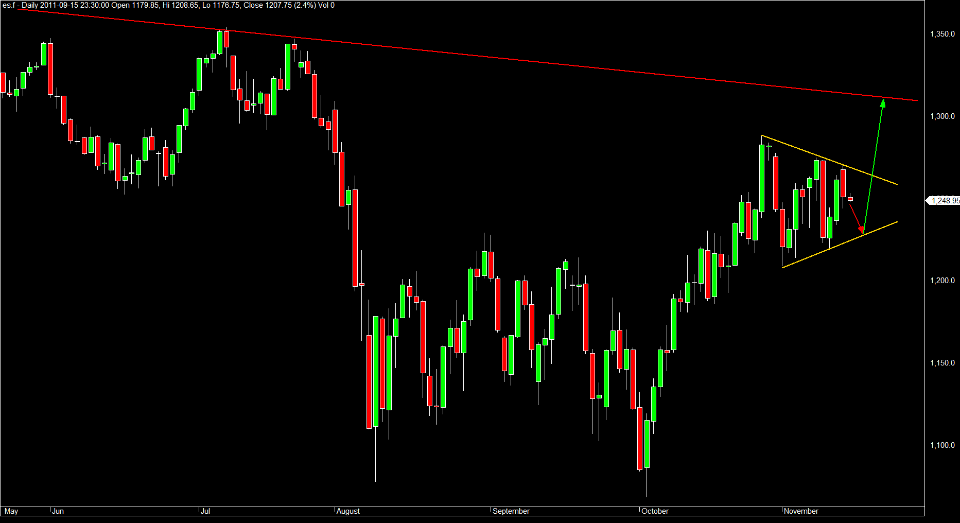 es.f kreska dzienna nadal formacja trójkąta symetrycznego aktualna i zarys ruchu zgodnie z przesłaniem formacji również.