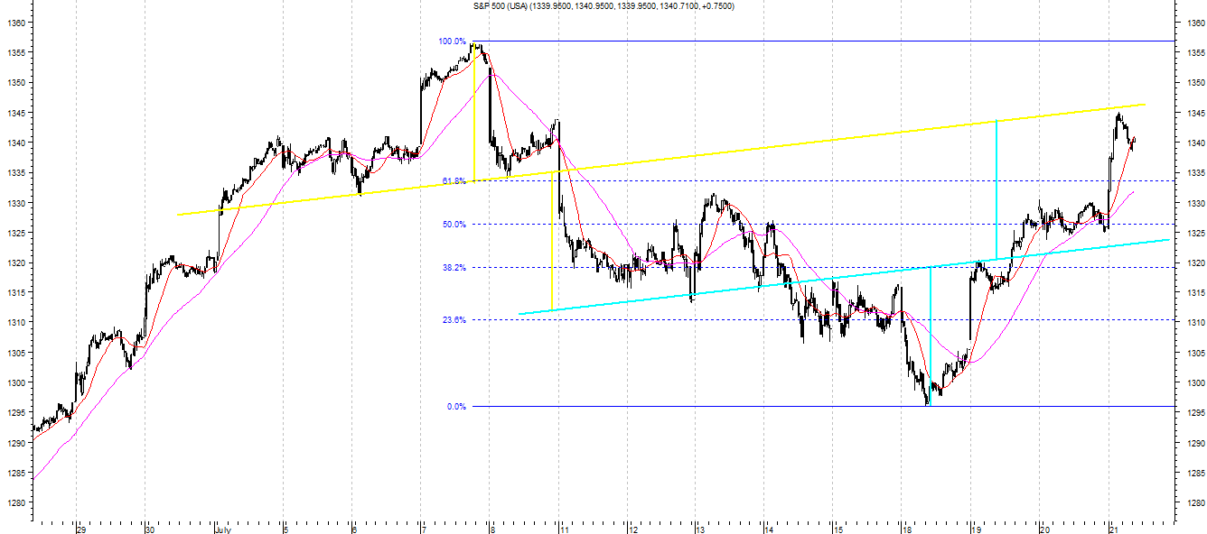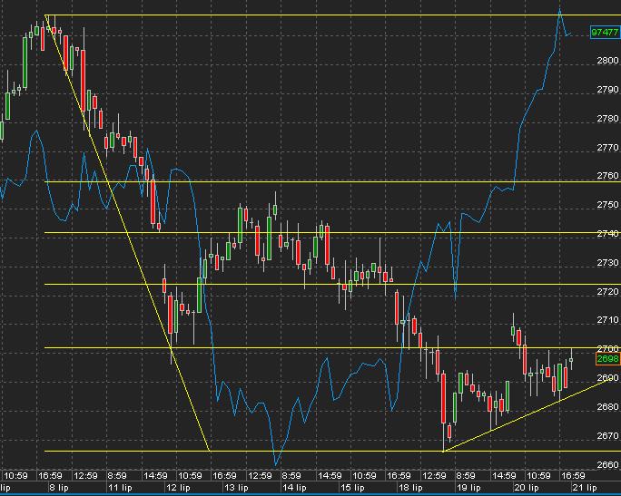 W perspektywie kilku(nastu) godzin mamy odbicie, wsparciem linia trendu a pierwsze opory na fucie to okolice 2700, poważniejsze to okolice 2750, które tocyferki dośc dokładnie pokrywają się z fibonami ostatniego zejścia.