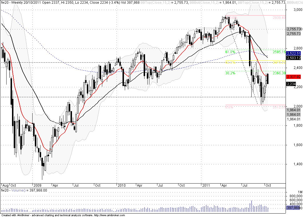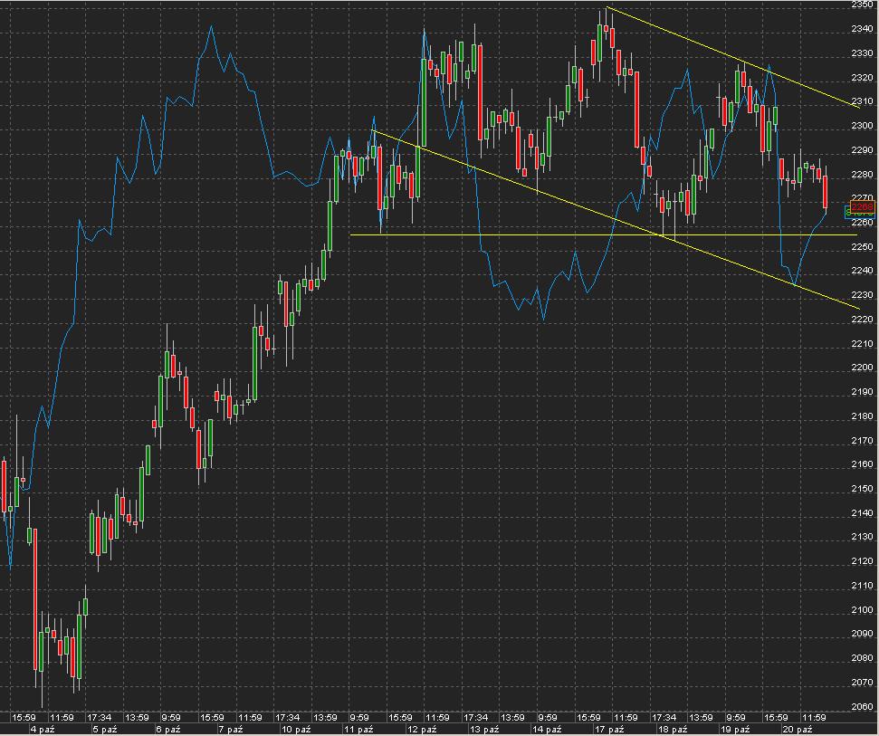 w tym tygodniu jeden podwójny szczyt się już namalował (zielona linia), a jego załamanie przyniosło kilkudziesięciopunktowe odbicie.