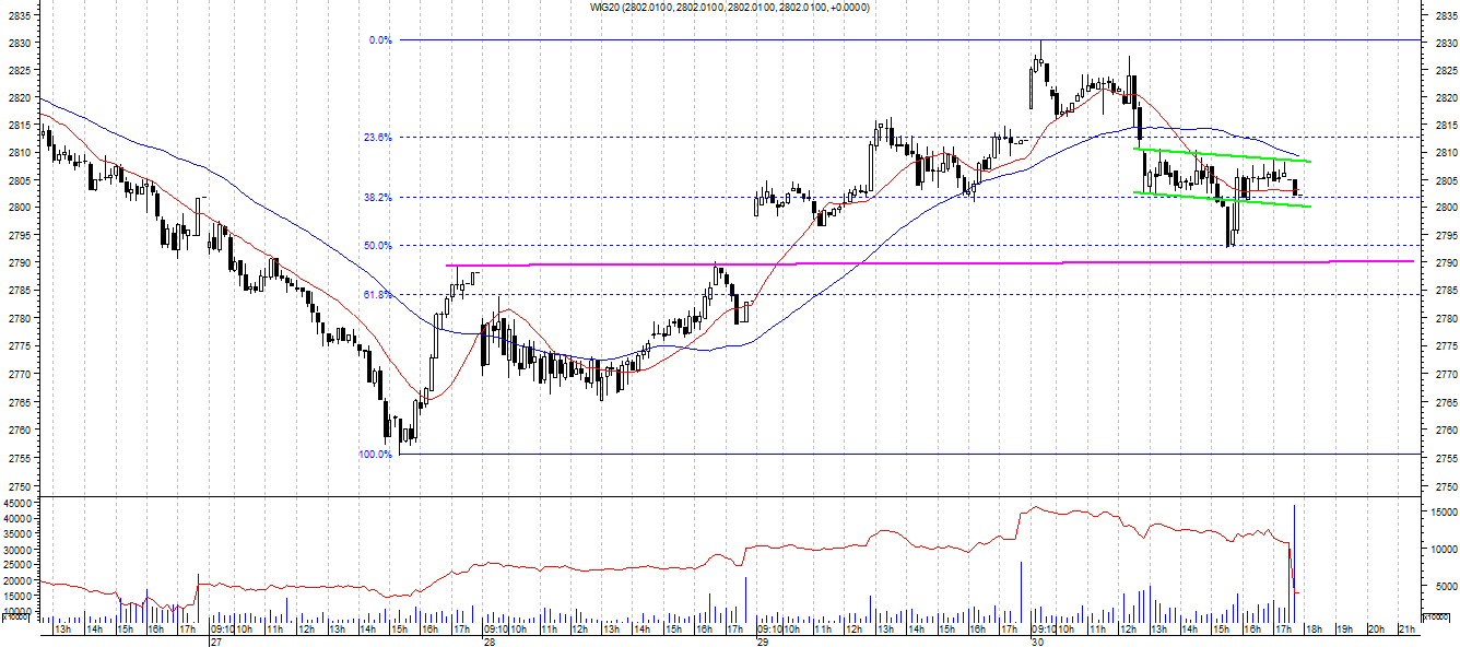 Ważne poziomy obrony na w20 na dziś to 2800 i 2790.