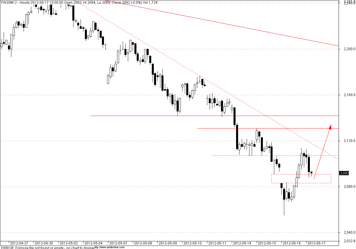 Plan minimum dla popytu na jutro to wyjście z kanału górą ale i wtedy szału bym się nie spodziewał, blisko jest następny opornik 50% fibona pokrywające się z okolicami 2150, ujemna baza tez optymizmu sobą nie wnosi (może Olab znajdzie chwile i wrzuci excela ile pkt zabiorą z indeksu dywidendy), to plus kolejne kłopociki makro mogą okazać się pożywką dla trendu który wzrostowy nie jest, a odreagowanie które obecnie obserwujemy będzie jedynie odbiciem po zbyt głębokim wejściu w ostatnie wsparcia a tak istotnych poziomów nie przebija się z marszu.