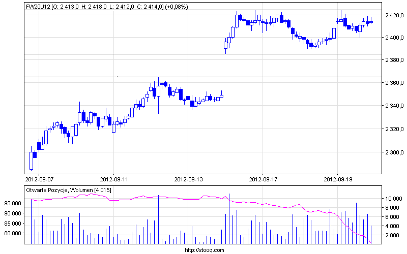Indeks wszedł w zakres luki, kontrakt był większej wiary i utrzymał dotychczasową minę 2385, kolejny plus.