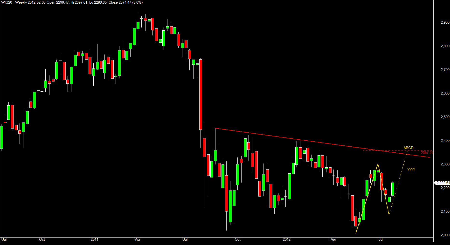Nie traktuję zarysu ruchu oznaczonego na wykresie w kategorii obowiązującego scenariusza ale jako figurę harmoniczną , która jest możliwa do realizacji i w przypadku jej zmaterializowania wiemy gdzie spodziewać się punktu D formacji. LOP od czwartku nam rósł na wzroście więc wydaje się , że ruch wzrostowy napędzany nowym paliwem w LOP ma szanse być kontynuowany.