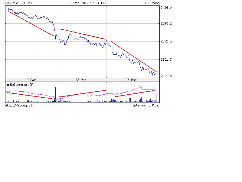 I wtorek - jak widać kontynuacja trendu (słowo klucz) z rosnącą dynamiką (ostatnie kreski na wykresie) – ruchy były logiczną kontynuacją poprzednich sesji. Nawet dobre poniedziałkowe Stany nas nie uratowały.