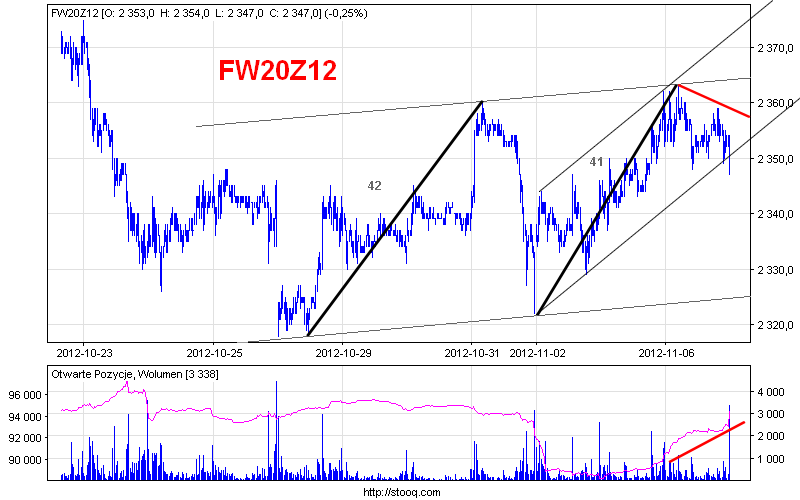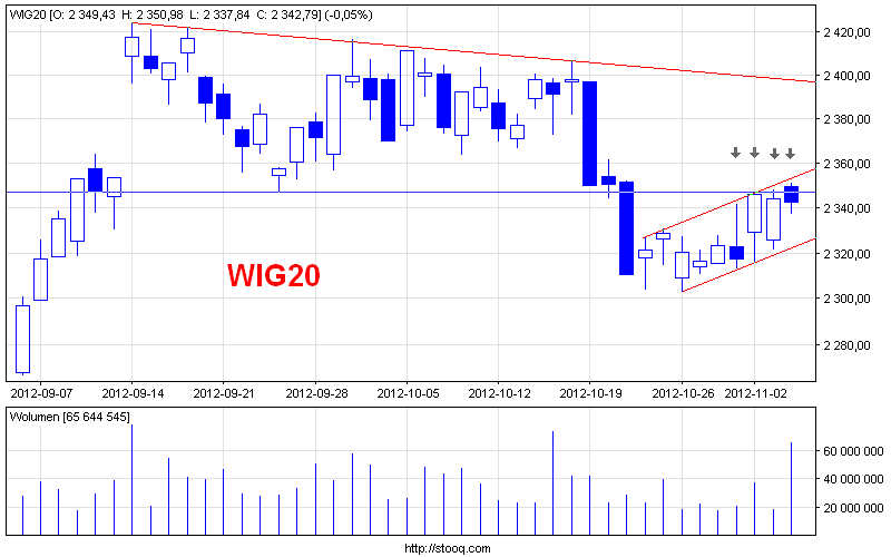 - wig 20 na day od 4 sesji (strzałki) nie przebił okolic 2350 pkt – wykres poniżej:
