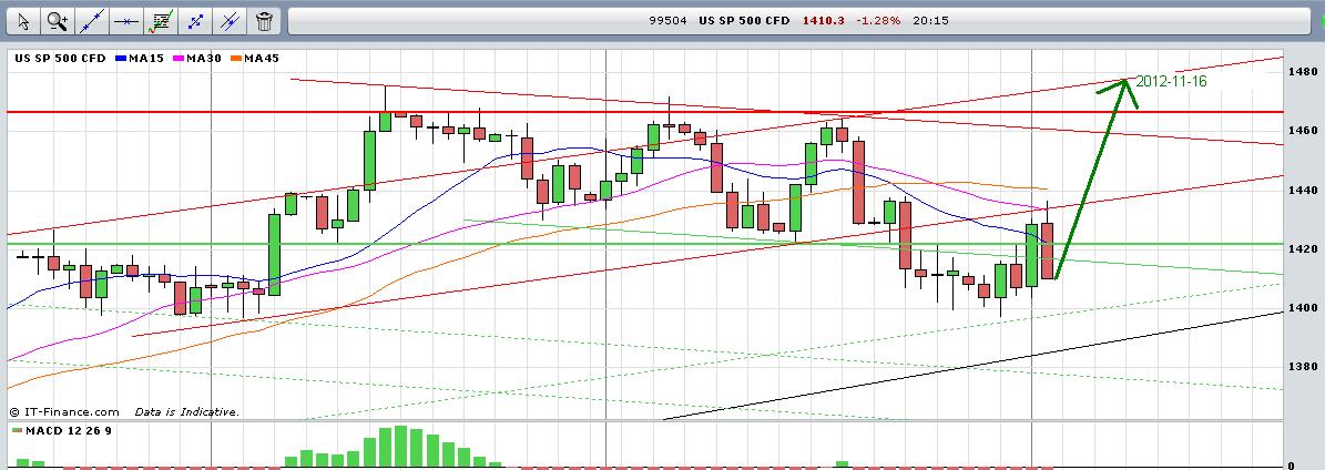 Wrzucam jeszcze raz rysunek, ktory wrzucalem pod koniec ubieglego miesiaca. Skrypt z datami pokazywal wtedy odpał w dniach 1, 2 listopad. Tak też się stało z czego byłem bardzo zadowolony:) Kolejna data PZ to dopiero 16 listopad. Jest tam wiele dat, więc pewnie będzie bujało, ale o tym za 2 tyg... Jako że skrypt PZ wyznaczył daty na 1,2 listopad i w dniu 2 listopada dołki z 1 listopada nie zostały pokonane twierdzę, że będziemy rosnąć do 16-stego. Ewentualne POKONANIE dołków w poniedziałek oznacza armageddon do 16-stego. W takim wypadku proszę nie tykać L!