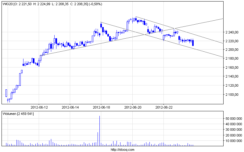To samo przy S na 2 370 - trzeba sie liczyc z przeciagnieciem o 50 - 90 pkt w gore przed oczekiwanym ruchem w kierunku 2 000. Pewne wsparcie to okolice 2 000, wszystko inne moze byc lamane bez konkretnych konsekwencji bo sily sa wyrownane (jak to w konsoli).
