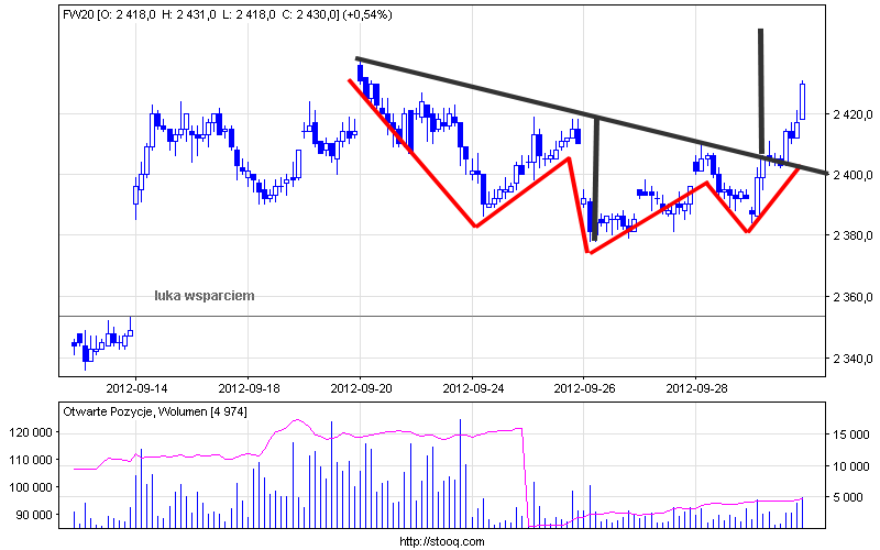 "Dopóki nie zamkniemy luki na instrumencie bazowym w cenach klozet (najlepiej z filtrem na 2340-2350) to spadków nie ma sensu obstawiać."