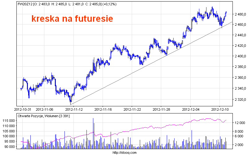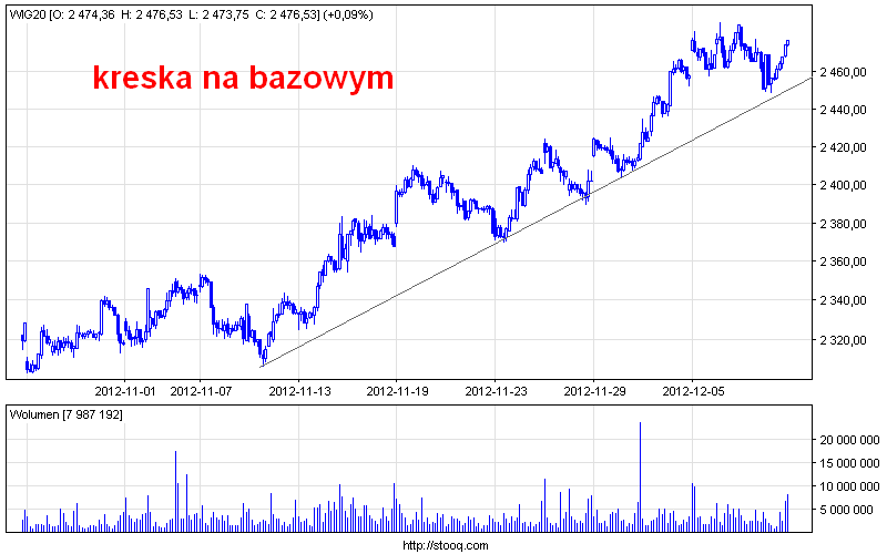 Optymistycznie w poniedziałek już pierwszy z poziomów zatrzymał osłabienie – dzienne minimum mieliśmy na 2448,64 pkt. Nie wiemy czy to już koniec zejścia ale w wypadku zastopowania korekty - bo tak należy określać dotychczasowe przeceny - przy 2450 pkt i utrzymania dłużej wspomnianych okolic nadal moglibyśmy nadal mówić o przewadze longów. Zjazd poniżej 2424 pkt w cenach klozet świadczyłby o ryzyku przedłużenia spadków i raczej przesądzał o powrocie do boczniaka.