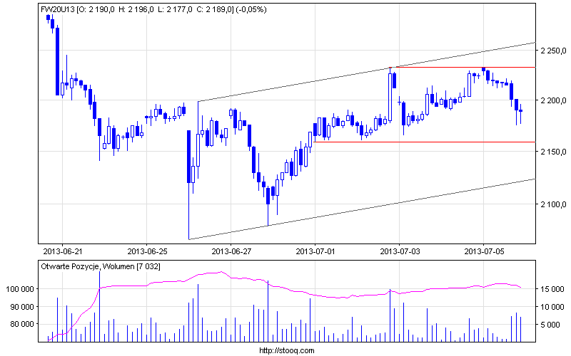 Przejście w górę wydawałoby się dość istotnego 2199 pkt nie spowodowało szału zakupów a nawet zanotowano powrót pod i mamy po piątku objęcie bezzzsy na day zarówno na bazowym jak i na fut.