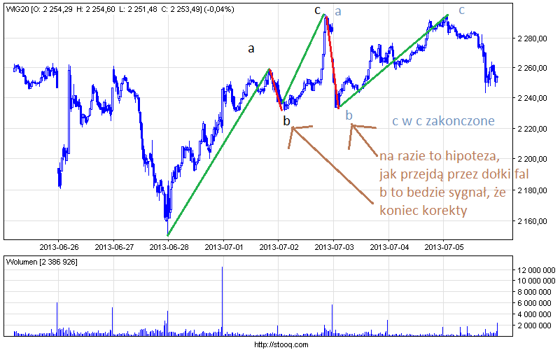 Z obrazka poniżej na siłę można by wykreślić jakiś orgr który jak na razie nie został zrealizowany i niewiele wskazuje żeby miał ochotę się zrealizować. Najbliższe opory i wsparcia na czerwono: poprawienie maxa o 1 pkt i zwrót (9 czarnych świeczek 1h aż prosi o małą odbitkę) nie świadczy o sile rynku. Z drugiej strony dopóki 2159 się trzyma można mieć nadzieję że jeszcze się uratujemy ale marna to nadzieja.