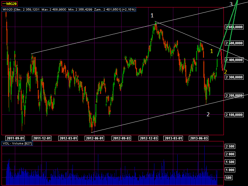 Nie wiem czy nie szkoda kapitału. Dojedziemy do górnego ograniczenia kanału i powinniśmy zrobić korektę. Docelowo jedziemy na 2950 robiąc dużą trójkę.