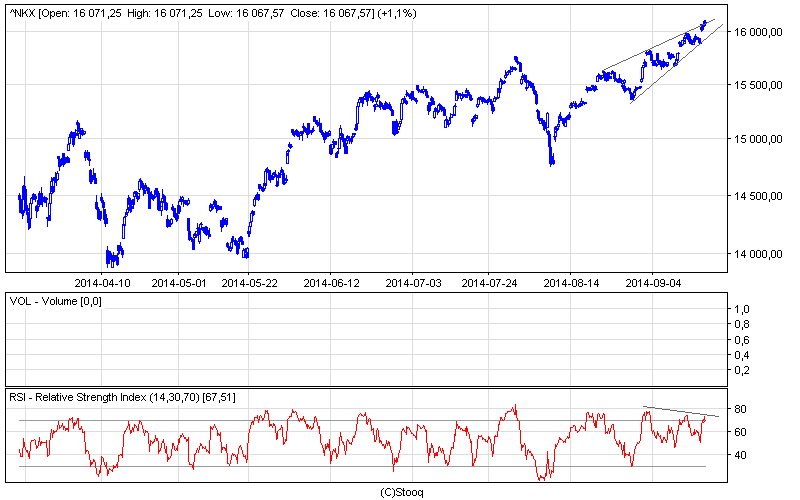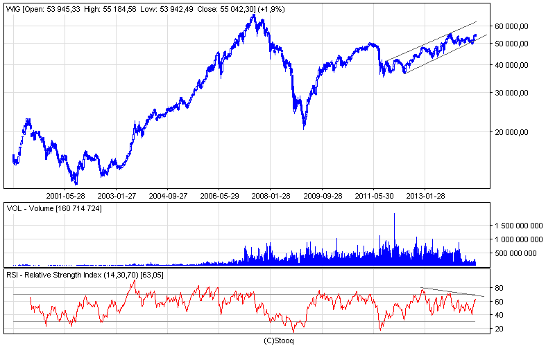 Wydaje mi się, że obecnie trzeba uważnie śledzić wig-a, który pewien czas temu utracił korelacje z wig20 i wybił już nowy szczyt, a obecnie testuje szczyty z listopada 2013, jak wybije ten szczyt to panie hossana...