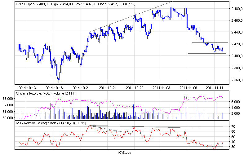 Jeżeli 2404 padnie to następne wsparcie dopiero w okolicach 2385...na razie wygląda to kiepsko...indeks nie ma sił się odbić.
