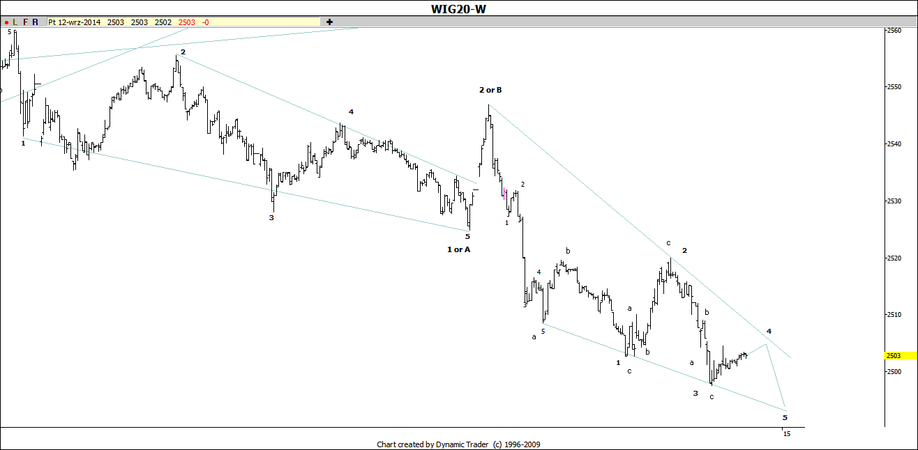 wersja z klinem, ale trzeba bardzo uważać z łapaniem, bo wybicie w dół zmieni diametralnie wersję i będzie wodospad, w przeciwnym wypadku równie mocny ruch powinien być w górę. Wersja negatywna musi się połączyć z wybiciem z kanału daxa. Jankesy nieźle zaskakują, bo piękny rgr na Russel 2000 jest obecnie w miejscu gdzie można przyjąć, że już rozpoczeli negacje.