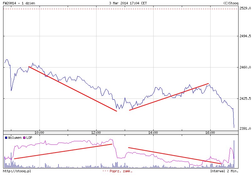 Przebieg poniedziałkowej sesji jednoznacznie wskazuje że dołek na koniec dnia to jeszcze nie TEN dołek – wykreślony rgr, złamane wsparcie na 2450, potężny spadek na dużym obrocie, nie pozamykana luka open, klozet na minie, spadek lopiszcza na wzrostach intra, ładowanie futa na spadku plus wycisnięcie na fiksie - wykres futa intra - bez sesji przełomu brak argumentów za wzrostami.