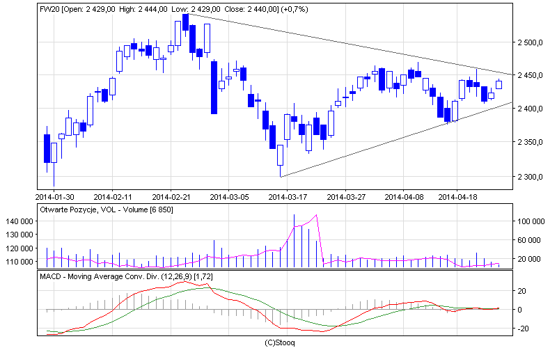 Rynek znowu rwie się do góry(dzisiaj przy nieco większych obrotach). Czy coś z tego wyjdzie? Osobiście uważam, że otoczenie i "rynki bazowe" nie pozwolą nam w najbliższym czasie rosnąć. Zwężający się trójkąt i mocno wypłaszczona MACD na dziennym. Wyjście powinno dać dynamiczny ruch, pewnie po majówce. Rozważam scenariusz dużej luki hossy lub bessy zaraz po majówce 5 maja i dalszy ruch potwierdzający lukę.... Jak sądzicie, który kierunek jest bardziej prawdopodobny?