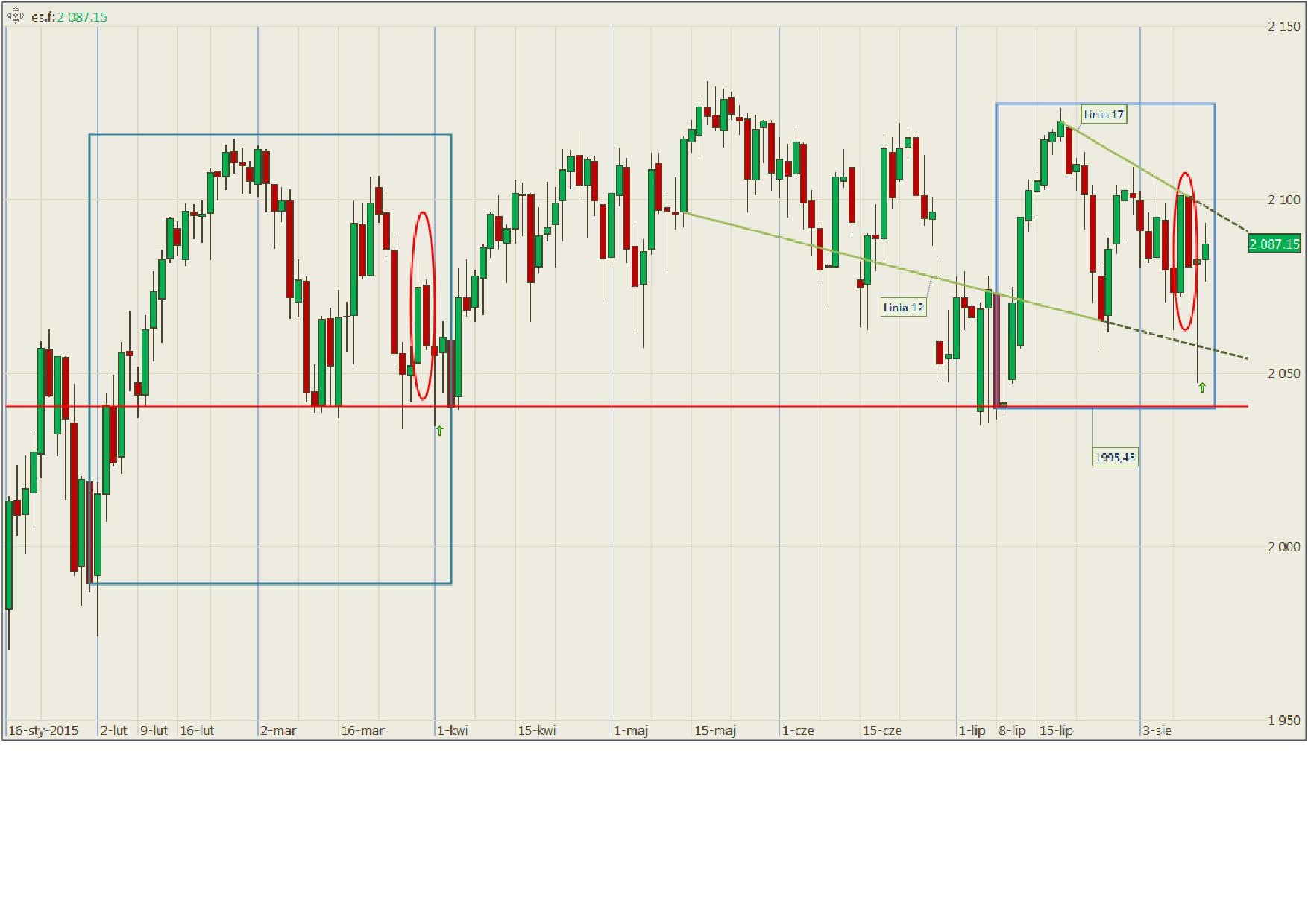 Biorąc pod uwagę sytuację banków, które odpowiadają za 30% wigu20, większe prawdopodobieństwo jest wybicie dołem. Do tego ostatni szczyt był niższy od poprzedniego, tak samo dołek. Jednak masz rację, aktualnie rozsądniej jest czekać na rozwój wydarzeń.