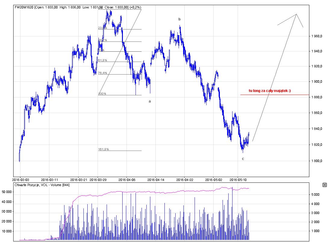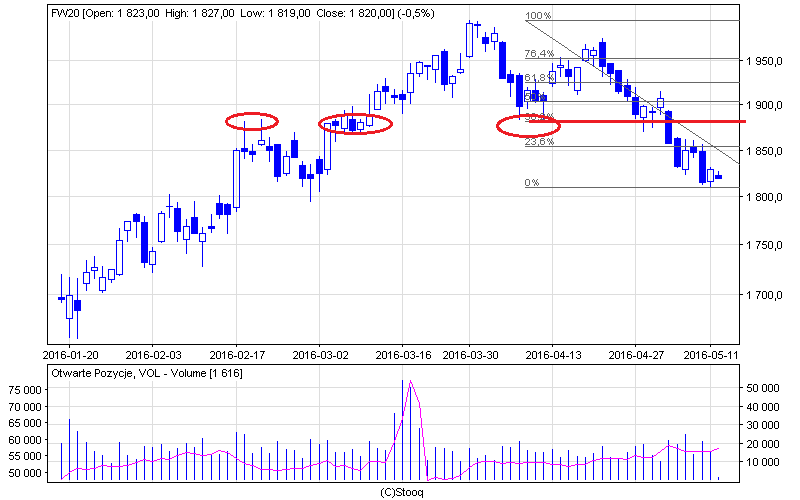 jest spora szansa na odreagowanie do poziomu oporu 1882. Tam też jest zniesienie 38,2