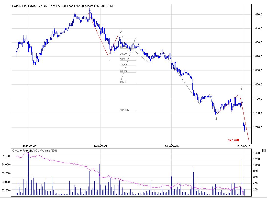 TO nie koniec spadków. Ostrzegam gorące Byczki, pierwsze drobne i korekcyjne wzrosty dopiero od czwartku, ale to z zupełnie innego (niższego) poziomu.
