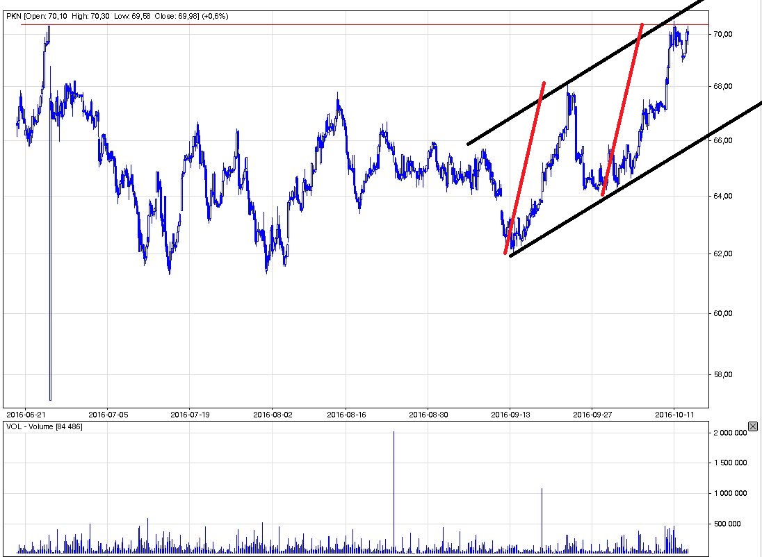 Młody napisał(a):Wygląda na to, że PKN się faktycznie wybił. Kupiłem dzisiaj mały pakiet - pozycja średnioterminowa. Zlecenie zabezpieczające na poziomie ~63 - wejście powrotne do strefy konsolidacji plus nowe, lokalne minimum. Zasięg wybicia w wersji optymistycznej to 95 zł (w perspektywie kilkunastu/kilkudziesięciu tygodni oczywiście)