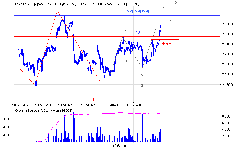 Aby sukces longa był full nie powinniśmy schodzić poniżej przekopanych oporników/załamanego rgra - > na wykresie czerwony prostokąt - inaczej można będzie uznać to za kolejną korektę w korekcie.